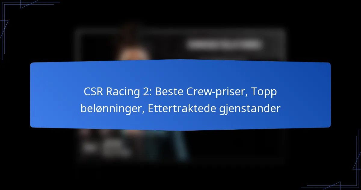 De beste crew-prisene i CSR Racing 2 gir betydelige fordeler i spillopplevelsen, forbedrer ytelsen og spillopplevelsen. Spillere bør prioritere belønninger som ikke bare forbedrer bilene deres, men også bidrar til langsiktig progresjon i spillet.