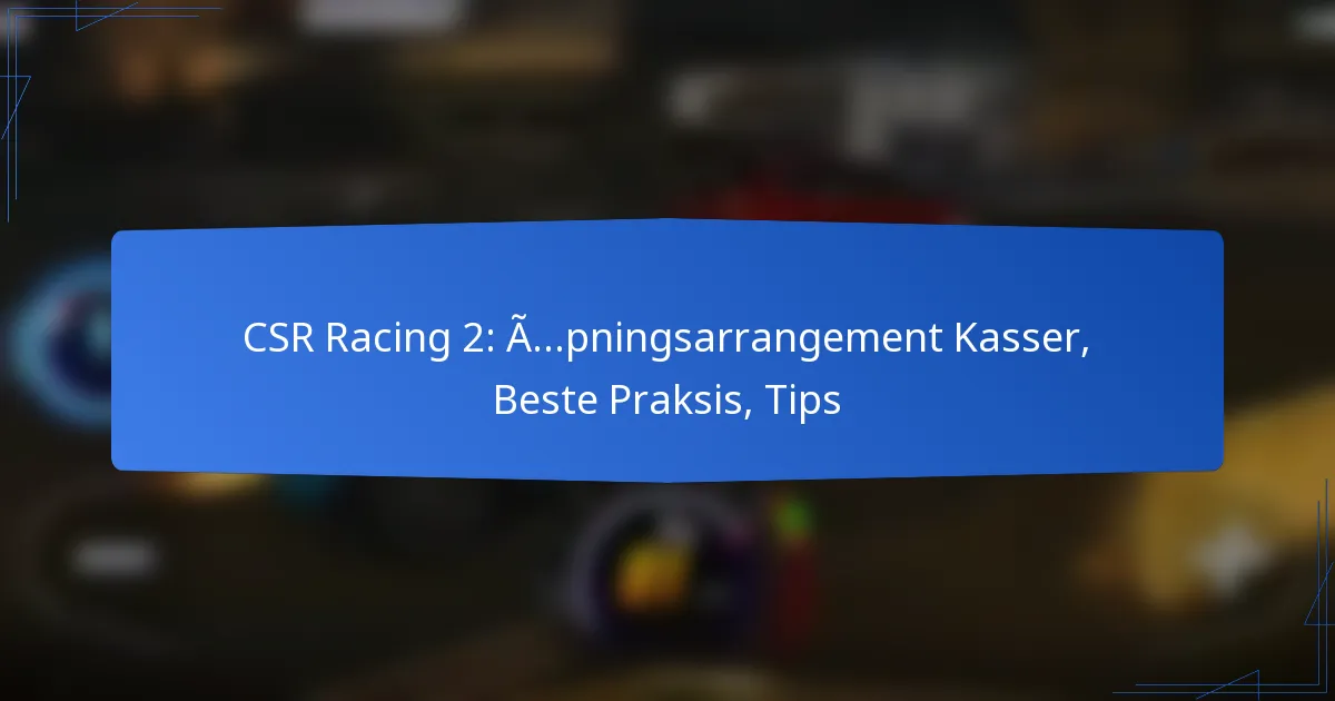I CSR Racing 2 er eventkasser verdifulle gjenstander i spillet som spillere kan tjene eller kjøpe under spesielle arrangementer, og tilbyr belønninger som biler, oppgraderinger og ressurser. For å få mest mulig ut av disse kassene, bør spillere ta en strategisk tilnærming til når og hvordan de åpner dem, og sikre at de maksimerer fordelene sine samtidig som de minimerer risikoene. Aktiv deltakelse i arrangementer kan ytterligere forbedre belønningene fra disse kassene, noe som fører til bedre racingopplevelser.
